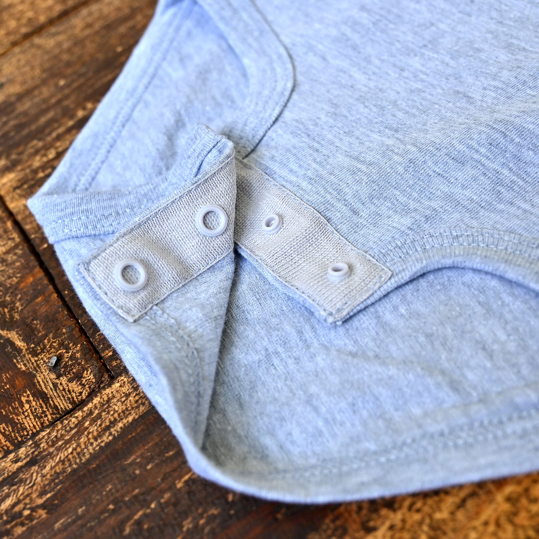 Envelope shoulder neckline + snap-crotch for easy dressing