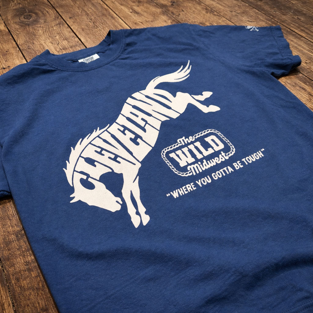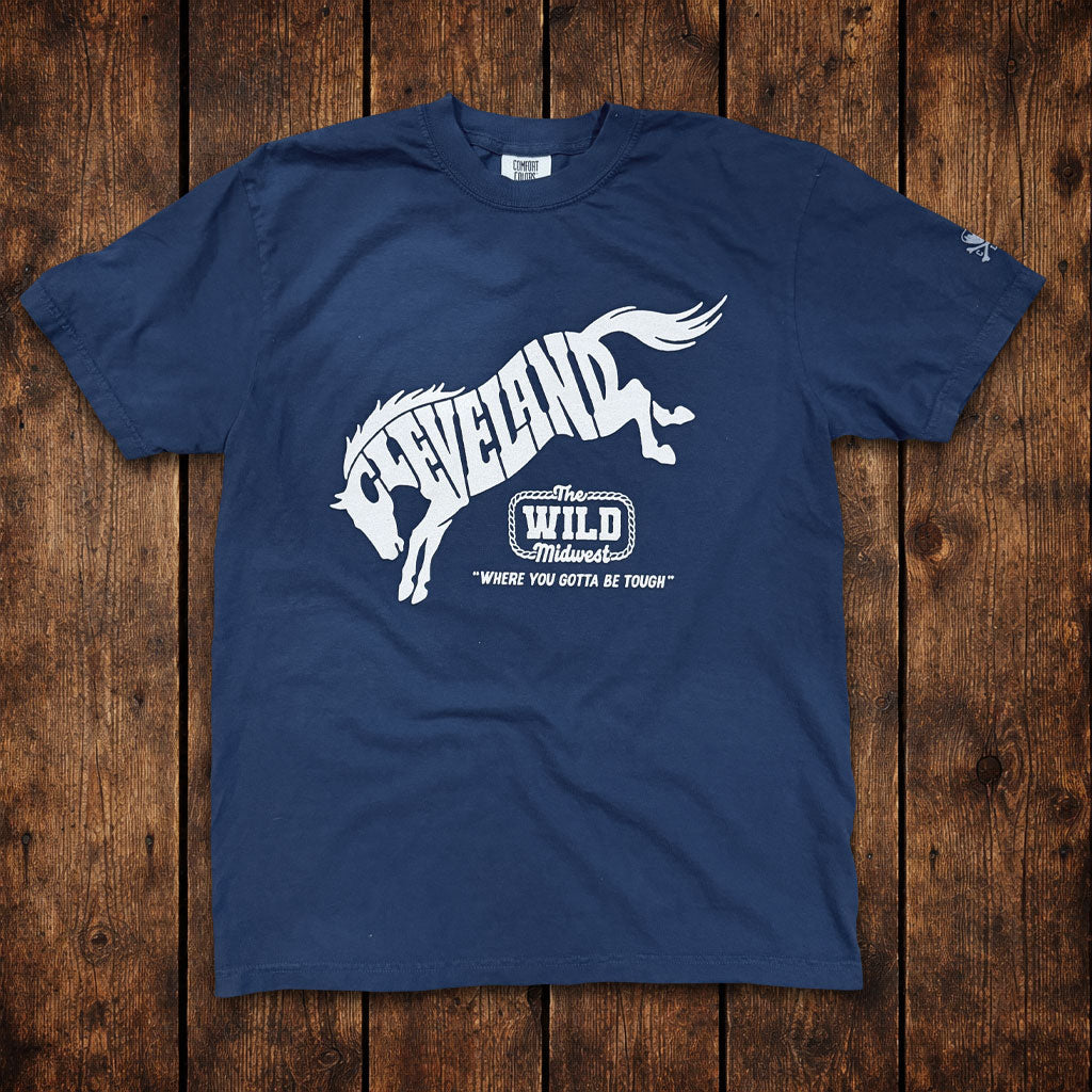 This western-driven Cleveland t-shirt brings frontier energy to Midwest roots, throwing it back to dust, grit, and hard-earned pride.