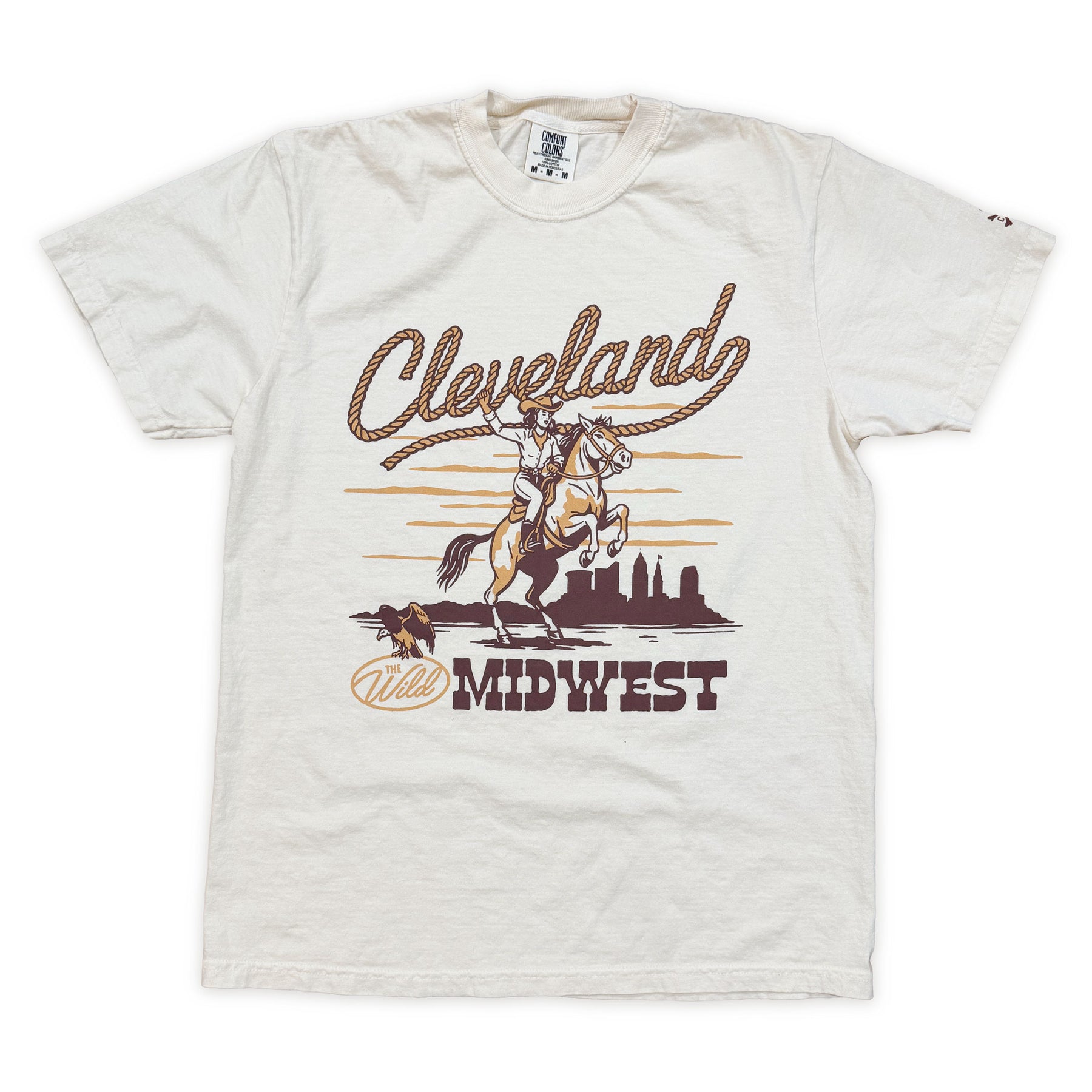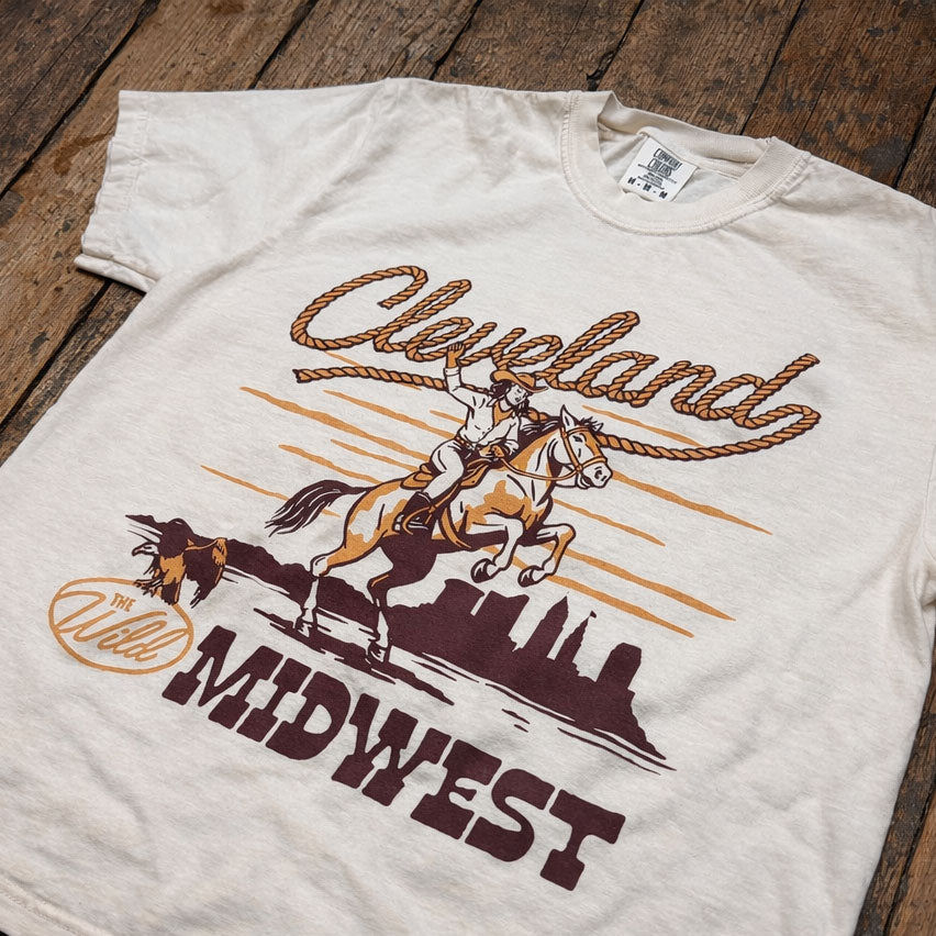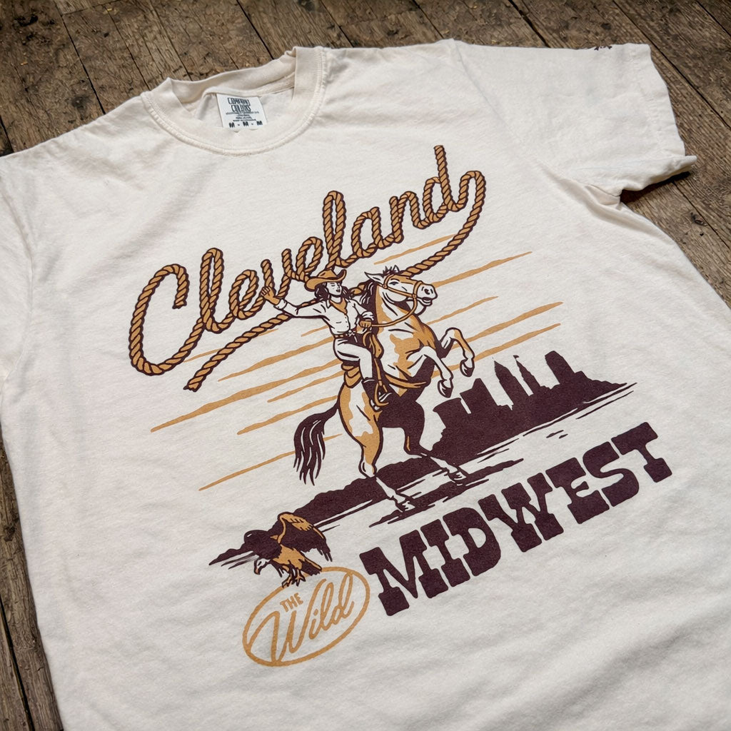 This cowgirl is bringing big western energy to the shores of Lake Erie! Show off your rodeo spirit and Rust Belt grit in the Wild Midwest with our latest t-shirt. It's perfect for ballgames, backyard hangs, country concerts, or just repping your city with a little extra flair