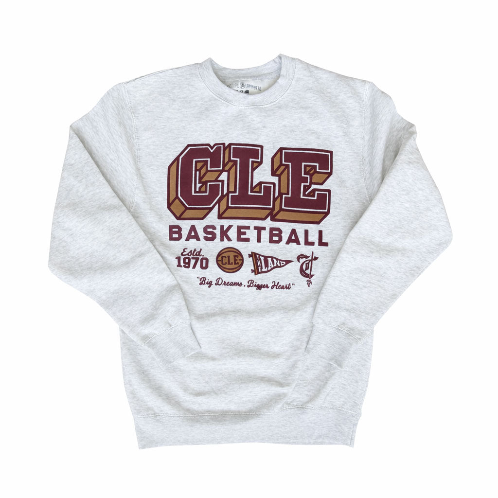 Show your love for the Land in the CLE Basketball Varsity Icons Crewneck Sweatshirt from CLE Clothing Co. Designed with bold varsity lettering and vintage basketball graphics, this unisex fleece crewneck is the perfect blend of comfort, warmth, and Cleveland pride.