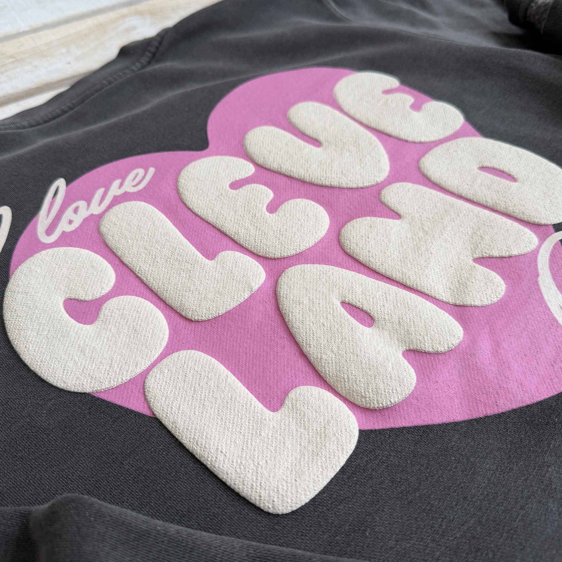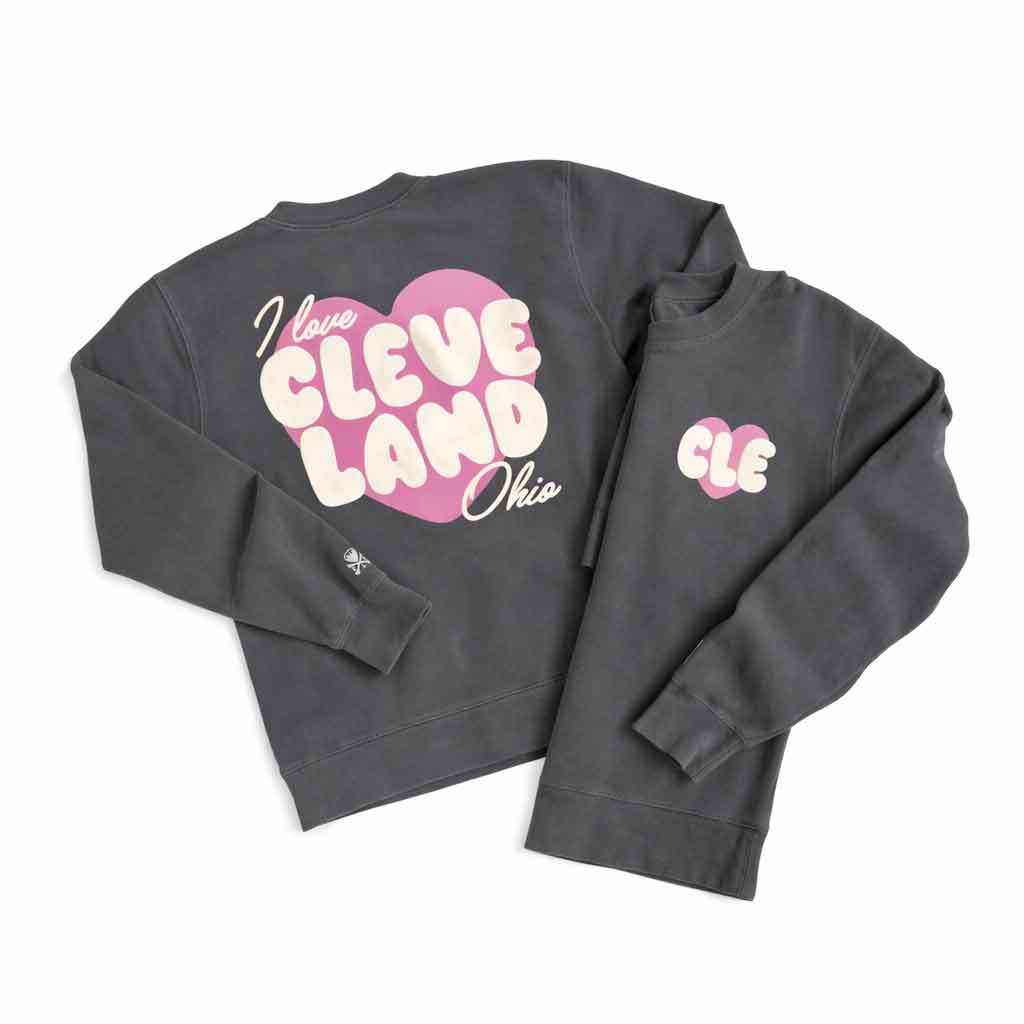 Wear your heart for Cleveland on your sleeve! The I Love Cleveland Ohio Pullover Sweatshirt is a cozy classic made to keep you warm while showing off your love for the Land. Featuring a bold heart graphic and retro-inspired lettering, this is printed with a unique puffy ink. This sweatshirt brings vintage Valentine’s vibes to an everyday essential, pair it with the matching cropped t-shirt or tote bag!