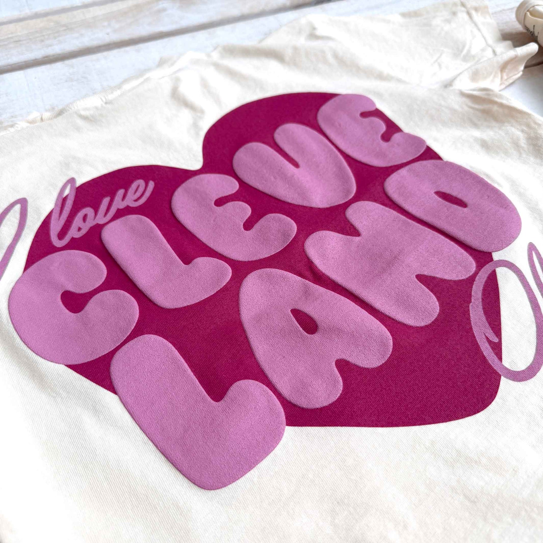 The I Love Cleveland Ohio Crop Top brings bold Valentine’s vibes to an easy, everyday silhouette. Featuring a bold heart graphic and retro-inspired lettering this shirt is printed with a unique puffy ink.